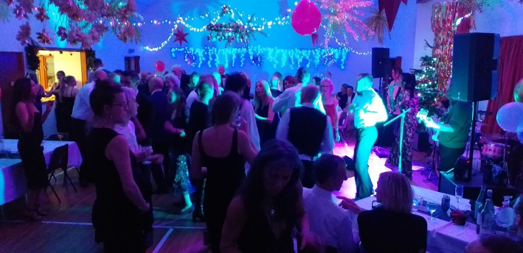 The annual Scoriton Ball in the Hall shows the excellent use the hall can be put to, with table seating for 100 guests, a live band and enthusiastic dancing – plus a Christmas tree too!